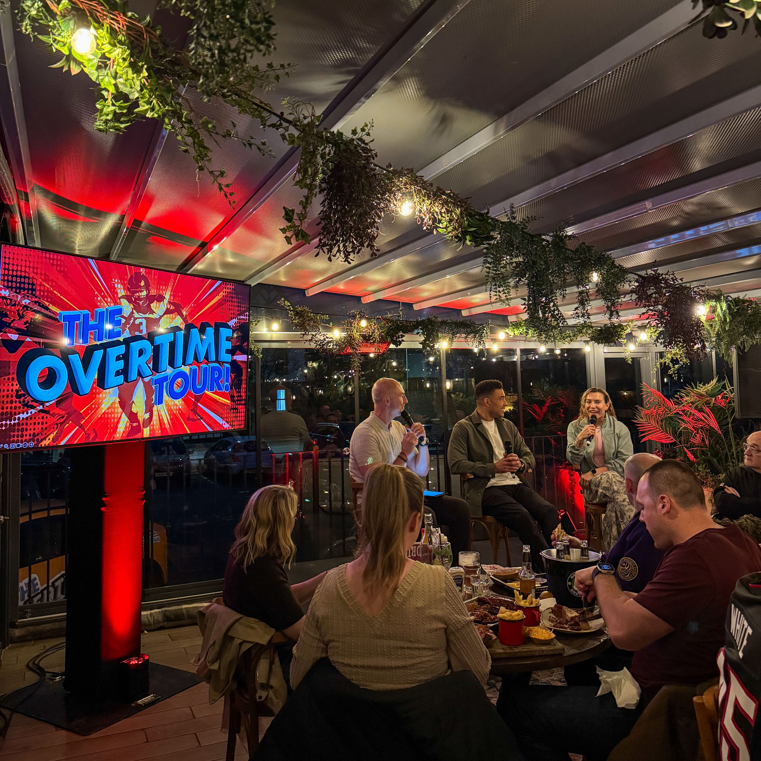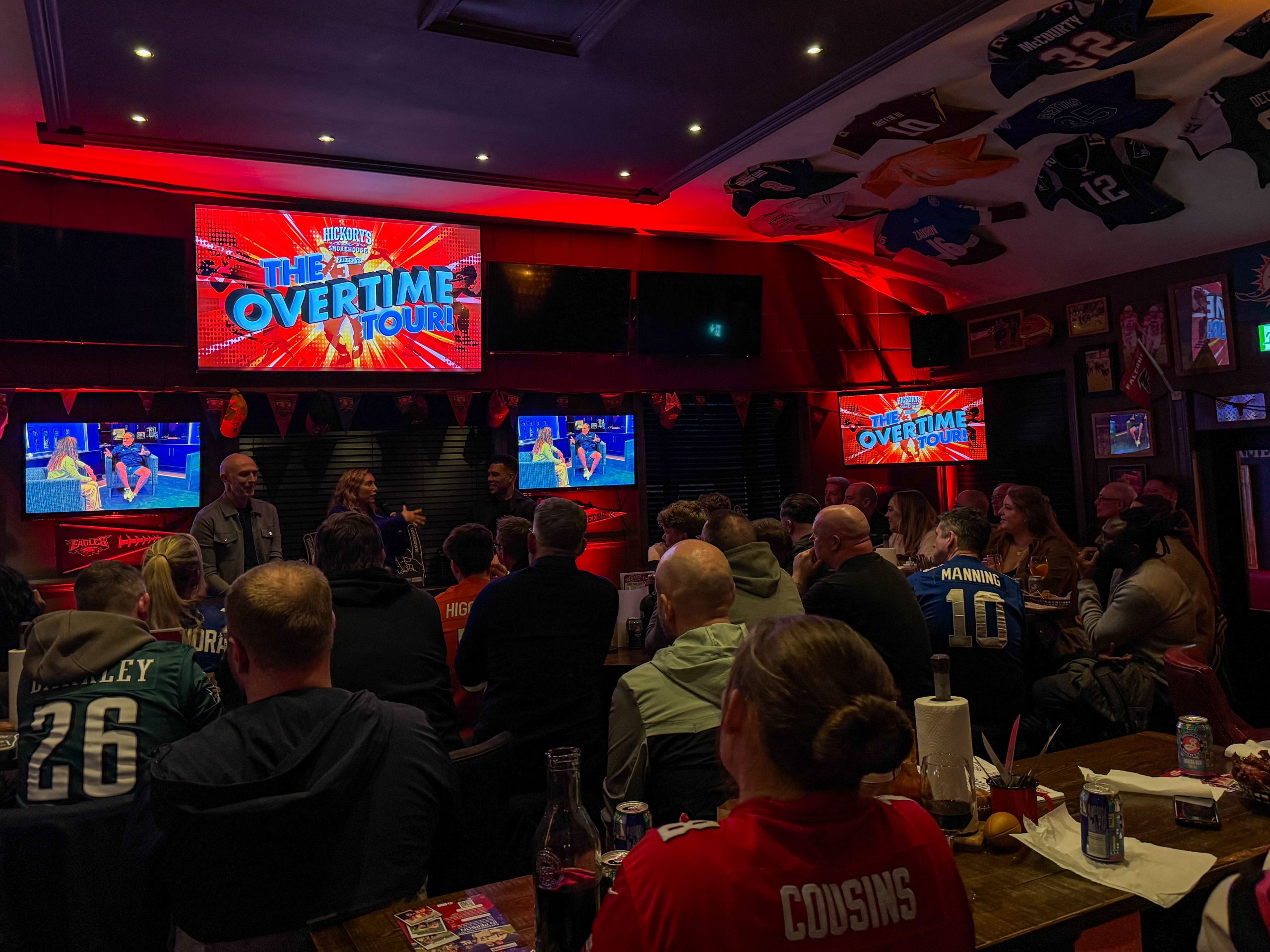Before we knew it, it was time for the fourth and final night of the Overtime Tour 2026! Once again the Overtime Tour car made a grand entrance to a packed-out Hickory’s West Kirby, as the veranda was full of NFL-Sundays regulars.